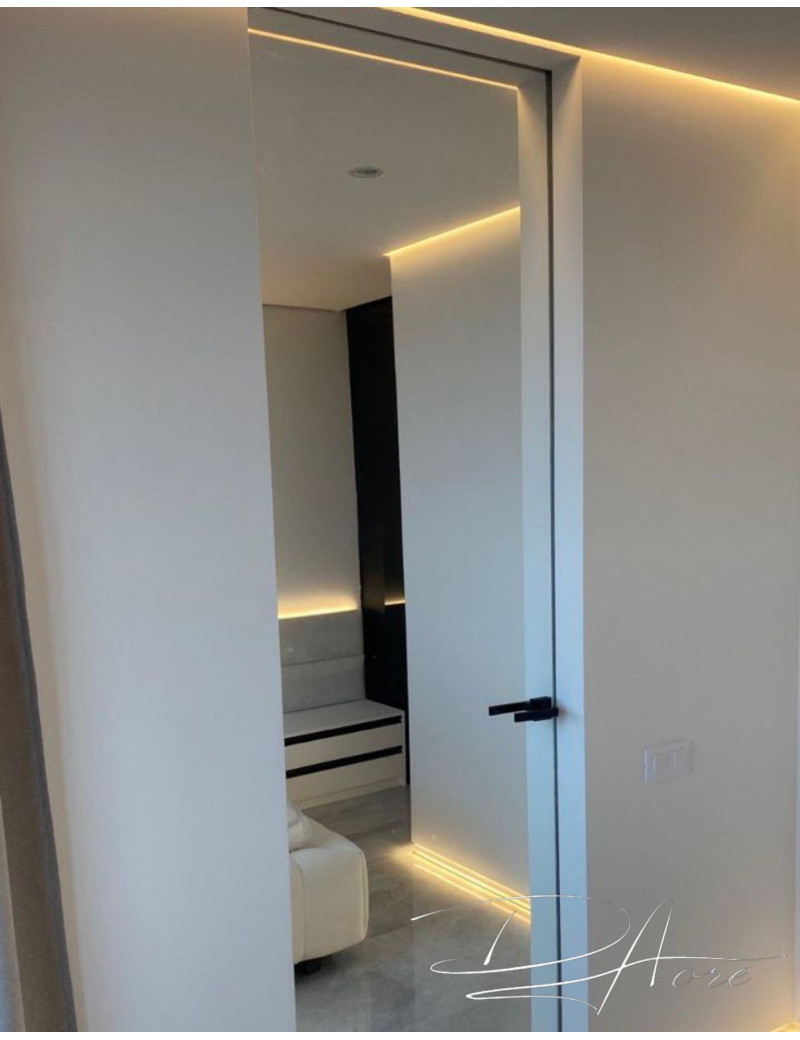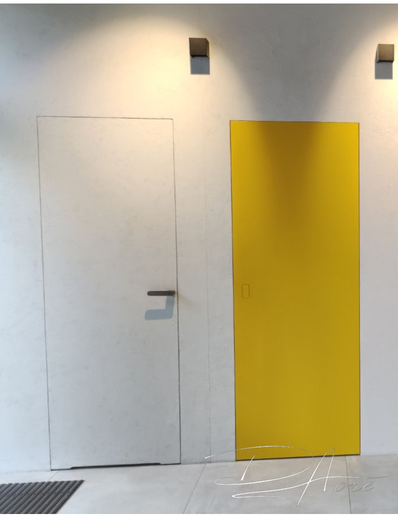 Конструкція: чорна/сіра анодована рама та торець по периметру полотна, покриття грунт/грунт під подальше оздоблення (можливе фарбування в Ral, шпонування, дзеркало, скло фарбоване, HPL, ДСП, керамограніт), зварена алюмінієва рама (можливе фарбування), полотно товщиною 50мм з четвертю, високоякісна італійська фурнітура.