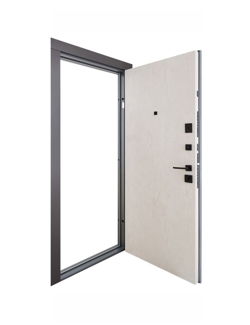 Дверне полотно виготовляється з металу 1,5 мм та укомплектоване двома МДФ накладками товщиною 10 мм кожна, що надає необхідний рівень тепло- та звукоізоляції.