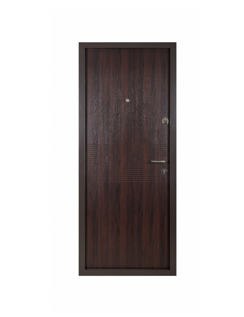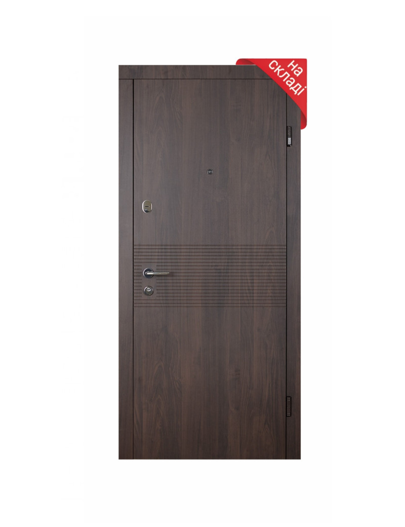 Дверне полотно виготовляється з металу 1,5 мм товщиною та укомплектовано двома МДФ накладками товщиною 10 мм кожна, що надає необхідний рівень тепло- та звукоізоляції.