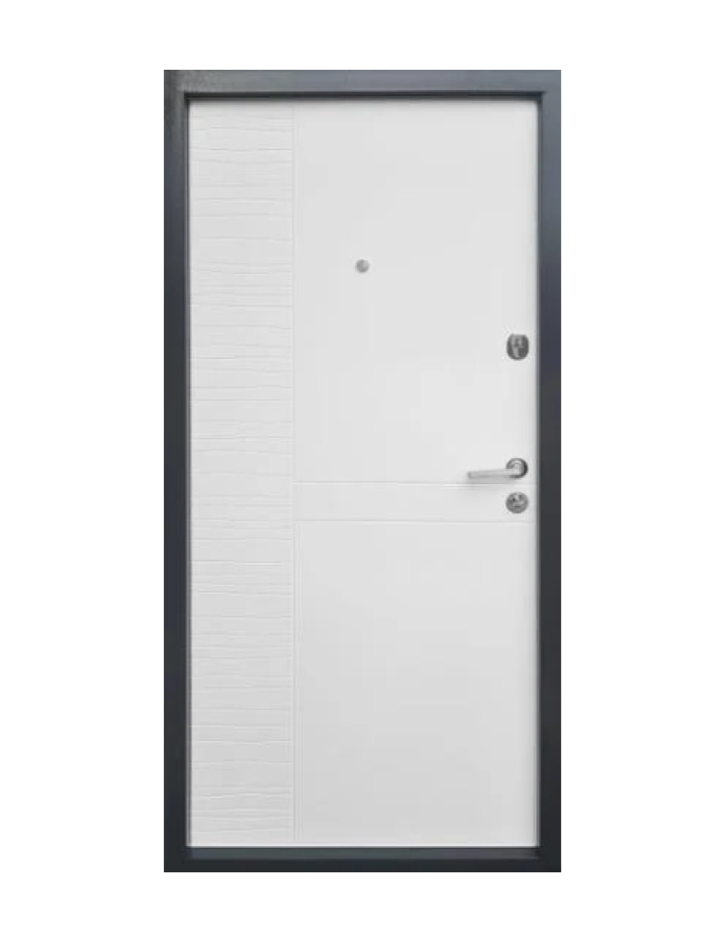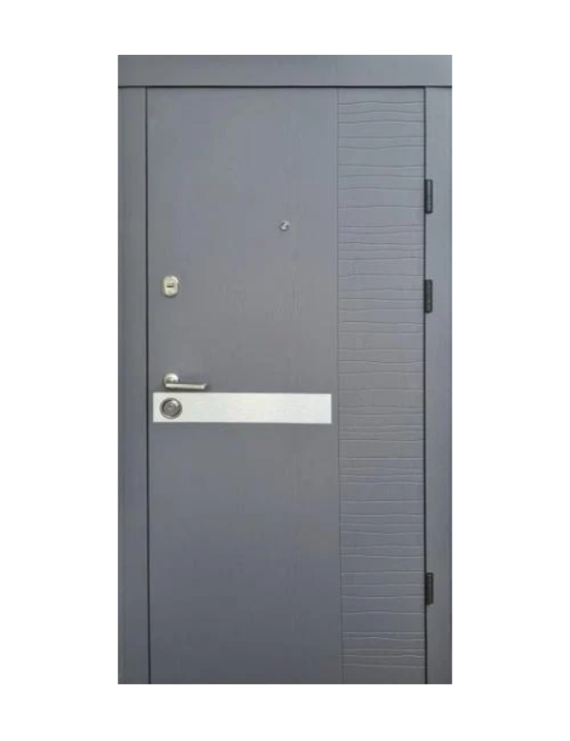Фурнітура: втоплена броненакладка, антизрізи, ручка на розетці, вічко, 3 зовнішні петлі на 180°