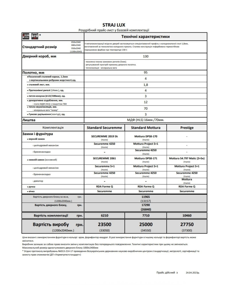 Ціна на кожну модель двері фабрики Страж залежить від комплектації, детальний розрахунок допоможе зробити наш менеджер.